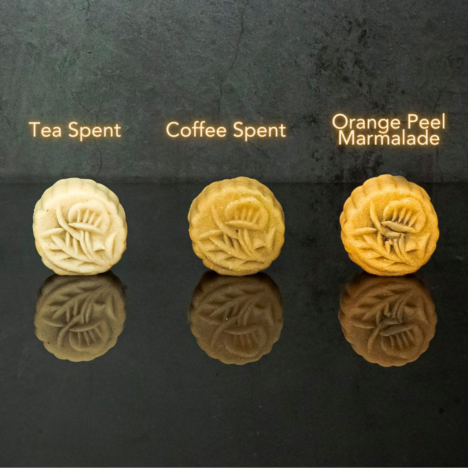 Ingredients: Lotus Paste, Filling (Chocolate, Orange Juice, Upcycled Orange Peel, inverted sugar syrup, Butter), Sugar, Glutinous Rice Flour, Shortening, Upcycled Okara Flour.